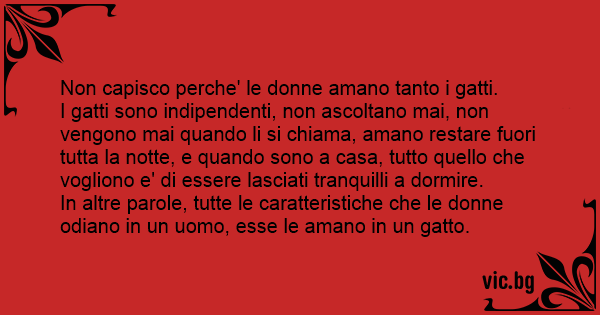 Non capisco perche' le donne amano tanto i gatti.