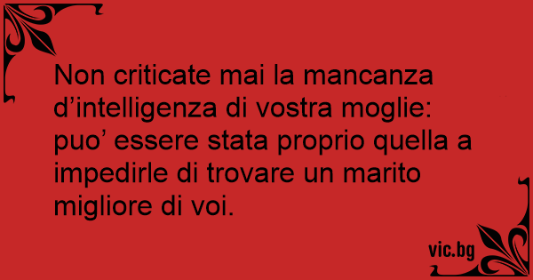 Non criticate mai la mancanza d’intelligenza di vostra moglie: puo’ essere stata proprio quella a impedirle di trovare un marito migliore di voi.