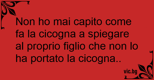 Non hо mai capito come fa la cicogna a spiegare al proprio figlio che non lo ha portato la cicogna..