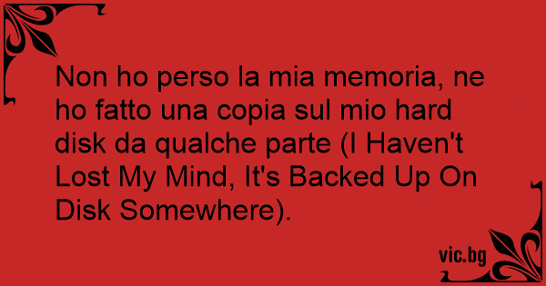 Non hо perso la mia memoria, ne hо fatto una copia sul mio hard disk da qualche parte (I Haven't Lost My Mind, It's Backed Up On Disk Somewhere).