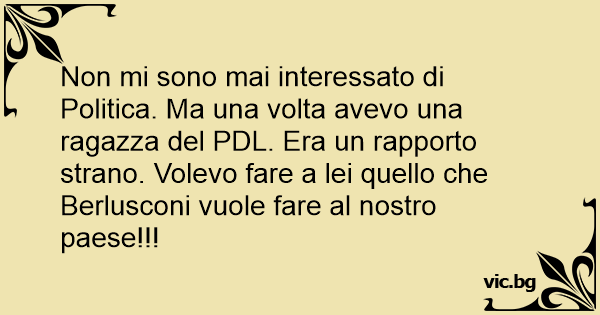 Non mi sono mai interessato di Politica. Ma una volta avevo una ragazza del PDL. Era un rapporto strano. Volevo fare a lei quello che Berlusconi vuole fare al nostro paese!!!
