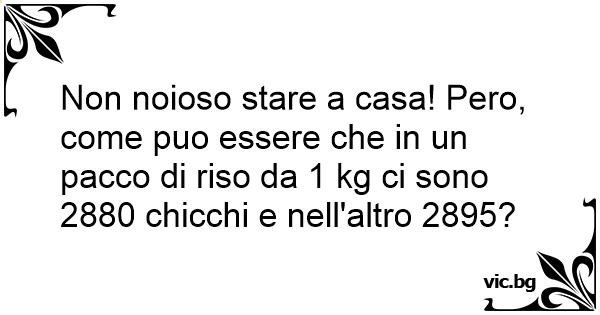 Non noioso stare a casa! Pero, come puo essere che in un pacco di riso da 1 kg ci sono 2880 chicchi e nell'altro 2895?