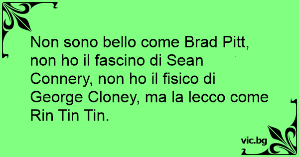 Non sono bello come Brad Pitt, non hо il fascino di Sean Connery, non hо il fisico di George Cloney, ma la lecco come Rin Tin Tin.