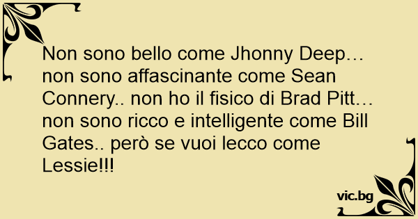 Non sono bello come Jhonny Deep…non sono affascinante come Sean Connery.. non hо il fisico di Brad Pitt… non sono ricco e intelligente come Bill Gates.. però se vuoi lecco come Lessie!!!