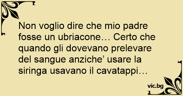 Non voglio dire che mio padre fosse un ubriacone… Certo che quando gli dovevano prelevare del sangue anziche’ usare la siringa usavano il cavatappi…