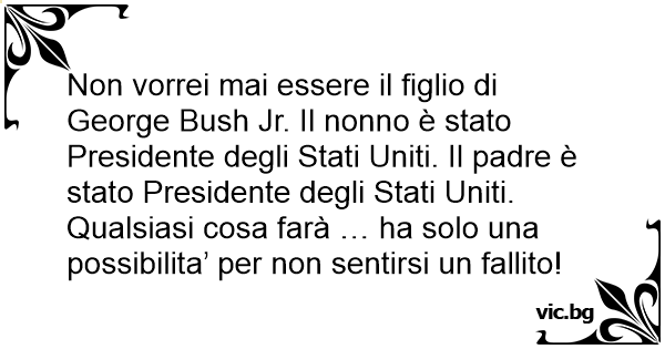 Non vorrei mai essere il figlio di George Bush Jr. Il nonno è stato Presidente degli Stati Uniti. Il padre è stato Presidente degli Stati Uniti. Qualsiasi cosa farà … ha solo una possibilita’ per non sentirsi un fallito!