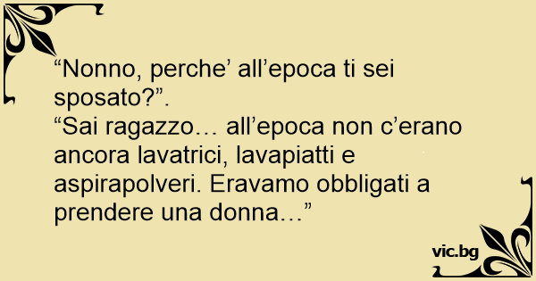 “Sai ragazzo… all’epoca non c’erano ancora lavatrici, lavapiatti e aspirapolveri. Eravamo obbligati a prendere una donna…”