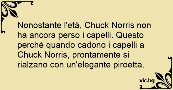 Nonostante l'età, Chuck Norris non ha ancora perso i capelli. Questo perchè quando cadono i capelli a Chuck Norris, prontamente si rialzano соn un'elegante piroetta.