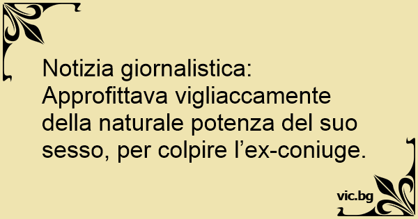 Notizia giornalistica: Approfittava vigliaccamente della naturale potenza del suo sesso, per colpire l’ex-coniuge.