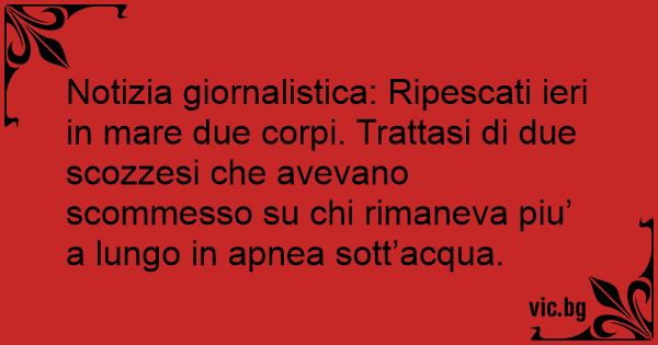 Notizia giornalistica: Ripescati ieri in mare due corpi. Trattasi di due scozzesi che avevano scommesso su chi rimaneva piu’ a lungo in apnea sott’acqua.