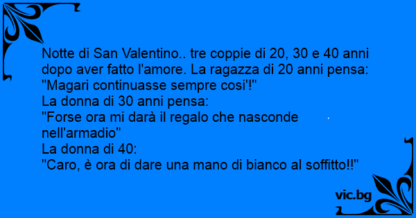 Notte di San Valentino.. tre coppie di 20, 30 e 40 anni dopo aver fatto l'amore. La ragazza di 20 anni pensa: