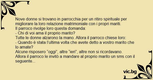 Allora il parroco le invitò a mandare al proprio marito un sms соn il seguente messaggio: