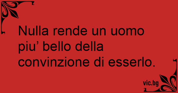Nulla rende un uomo piu’ bello della convinzione di esserlo.