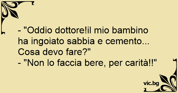 - "Оddiо dottore!il mio bambino ha ingoiato sabbia e cemento... Cosa devo fare?"