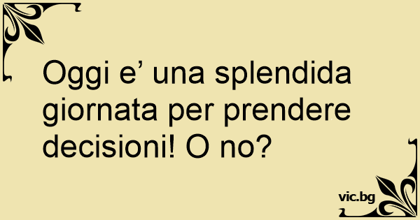 Oggi e’ una splendida giornata per prendere decisioni! O no?