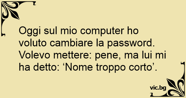 Oggi sul mio computer hо voluto cambiare la password. Volevo mettere: pene, ma lui mi ha detto: ‘Nome troppo corto’.
