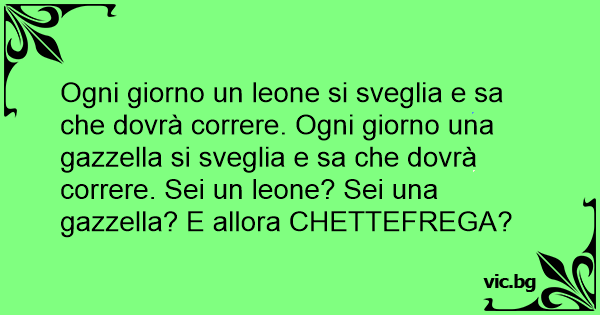 Ogni giorno un leone si sveglia e sa che dovrà correre. Ogni giorno una gazzella si sveglia e sa che dovrà correre. Sei un leone? Sei una gazzella? E allora CHETTEFREGA?