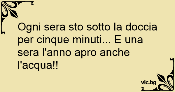 Ogni sera sto sotto la doccia per cinque minuti... E una sera l'anno apro anche l'acqua!!