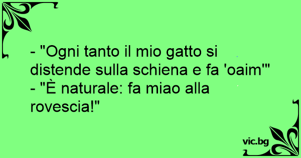- "Ogni tanto il mio gatto si distende sulla schiena e fa 'oaim'"