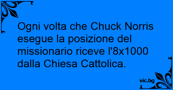 Ogni volta che Chuck Norris esegue la posizione del missionario riceve l'8x1000 dalla Chiesa Cattolica.