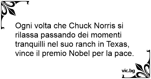 Ogni volta che Chuck Norris si rilassa passando dei momenti tranquilli nel suo ranch in Texas, vince il premio Nobel per la pace.