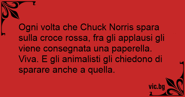 Ogni volta che Chuck Norris spara sulla croce rossa, fra gli applausi gli viene consegnata una paperella. Viva. E gli animalisti gli chiedono di sparare anche a quella.