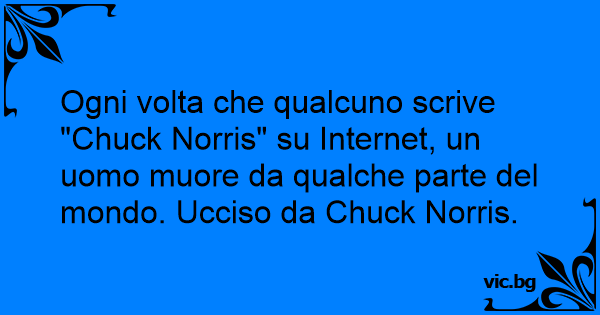 Ogni volta che qualcuno scrive "Chuck Norris" su Internet, un uomo muore da qualche parte del mondo. Ucciso da Chuck Norris.