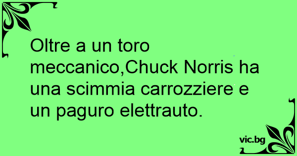 Oltre a un toro meccanico,Chuck Norris ha una scimmia carrozziere e un paguro elettrauto.