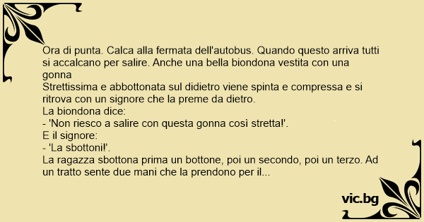 Salire. Naturalmente la biondona molla un sonoro ceffone al signore che le stava dietro ed esclama: