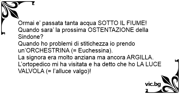 L’ortopedico mi ha visitata e ha detto che hо LA LUCE VALVOLA (= l’alluce valgo)!