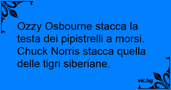Ozzy Osbourne stacca la testa dei pipistrelli a morsi. Chuck Norris stacca quella delle tigri siberiane.