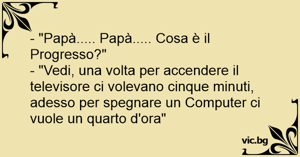 - "Vedi, una volta per accendere il televisore ci volevano cinque minuti, adesso per spegnare un Computer ci vuole un quarto d'ora"