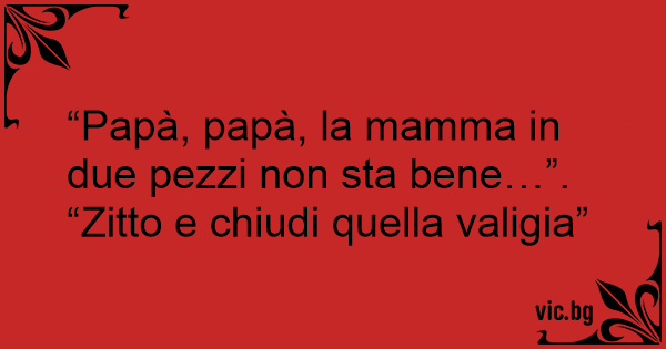 “Papà, papà, la mamma in due pezzi non sta bene…”.