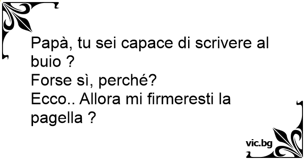 - "Papà, sai firmare ad occhi chiusi?" chiede Pierino al padre. - "Certo!" - "Allora chiudi gli occhi e firma la mia pagella!"