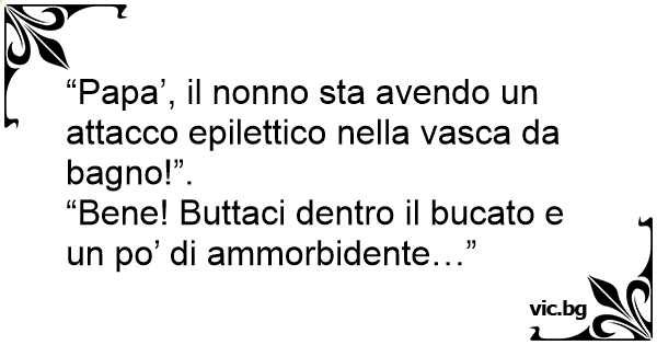 “Papa’, il nonno sta avendo un attacco epilettico nella vasca da bagno!”.