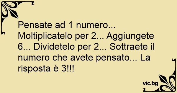 Pensate ad 1 numero... Moltiplicatelo per 2... Aggiungete 6... Dividetelo per 2... Sottraete il numero che avete pensato... La risposta è 3!!!