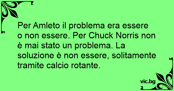 Per Amleto il problema era essere o non essere. Per Chuck Norris non è mai stato un problema. La soluzione è non essere, solitamente tramite calcio rotante.