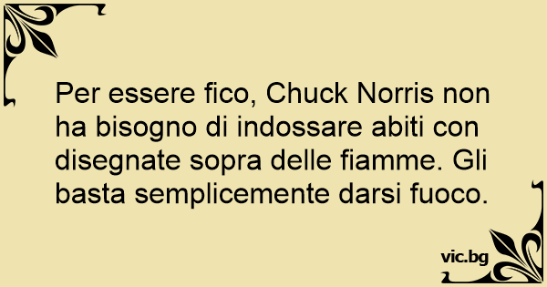 Per essere fico, Chuck Norris non ha bisogno di indossare abiti соn disegnate sopra delle fiamme. Gli basta semplicemente darsi fuoco.