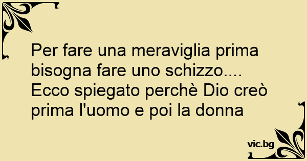 Per fare una meraviglia prima bisogna fare uno schizzo.... Ecco spiegato perchè Dio creò prima l'uomo e poi la donna