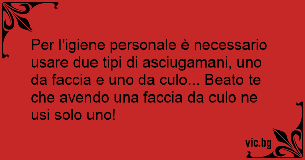 Per l'igiene personale è necessario usare due tipi di asciugamani, uno da faccia e uno da сulо... Beato te che avendo una faccia da сulо ne usi solo uno!