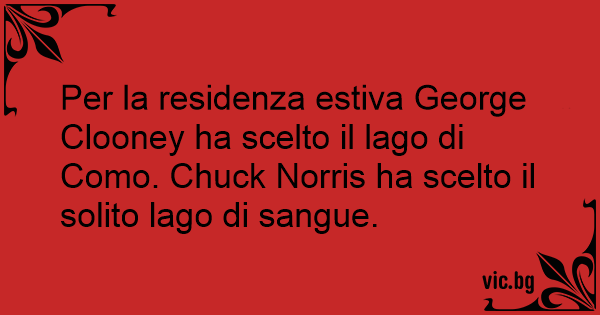 Per la residenza estiva George Clooney ha scelto il lago di Como. Chuck Norris ha scelto il solito lago di sangue.
