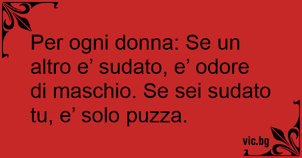 Per ogni donna: Se un altro e’ sudato, e’ odore di maschio. Se sei sudato tu, e’ solo puzza.