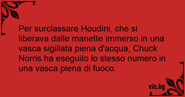Per surclassare Houdini, che si liberava dalle manette immerso in una vasca sigillata piena d'acqua, Chuck Norris ha eseguito lo stesso numero in una vasca piena di fuoco.