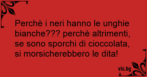 Perchè i neri hanno le unghie bianche??? perchè altrimenti, se sono sporchi di cioccolata, si morsicherebbero le dita!