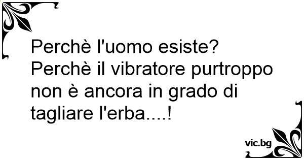 Perchè l'uomo esiste? Perchè il vibratore purtroppo non è ancora in grado di tagliare l'erba....!