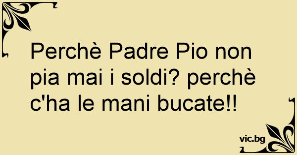 Perchè Padre Pio non pia mai i soldi? perchè c'ha le mani bucate!!