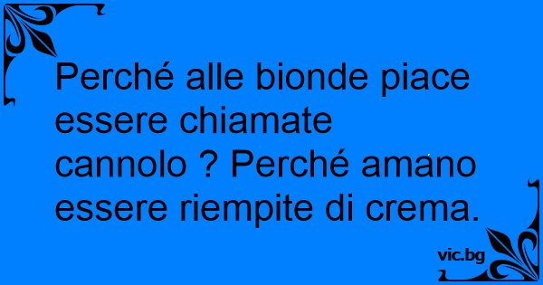 Perché alle bionde piace essere chiamate cannolo ? Perché amano essere riempite di crema.