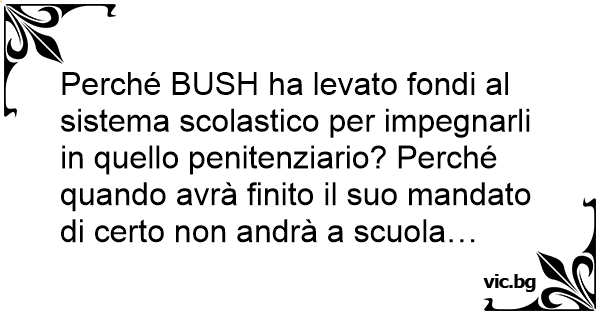 Perché BUSH ha levato fondi al sistema scolastico per impegnarli in quello penitenziario? Perché quando avrà finito il suo mandato di certo non andrà a scuola…
