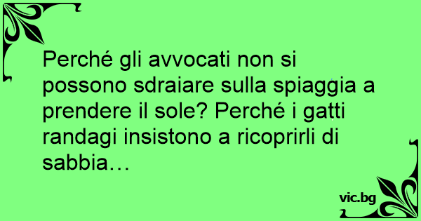 Perché gli avvocati non si possono sdraiare sulla spiaggia a prendere il sole? Perché i gatti randagi insistono a ricoprirli di sabbia…