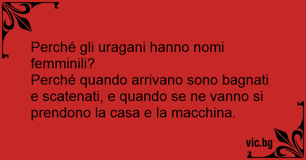 Perchè i più grandi tornado hanno il nome di donna? Perchè quando arrivano sono caldi e umidi... e quando se ne vanno, si portano via tutto, anche la casa e la macchina!